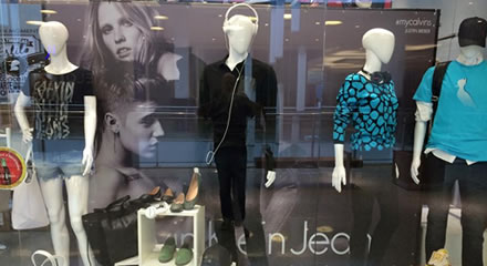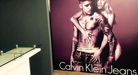 A Coutmarc, empresa que representa a Calvin Klein no rio de janeiro, solicitou adesivos personalizados e letras em acrílico cortadas a laser para nova campanha da marca e apresentando ao público o novo “garoto” propaganda, Justin Bieber.