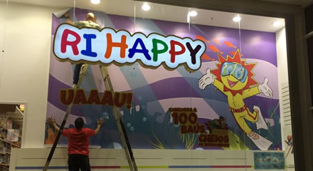 Fomos solicitados pela agência a confeccionar adesivos e placas sinalizadoras para toda a Rede Pop.