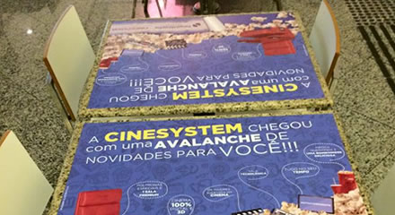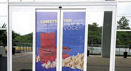 Devido a inauguração do cinema no Parque Shopping Sulacap, participamos da campanha de divulgação, adesivando tapumes, escadas rolantes, mesas da praça de alimentação e portas de entrada.